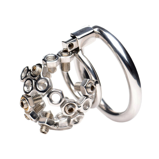 Made from lightweight nylon resin material, it comes with two sets of soft silicone spikes. These do not provide overly intense stimulation, making it a gentle yet thrilling option for those new to spiked chastity.